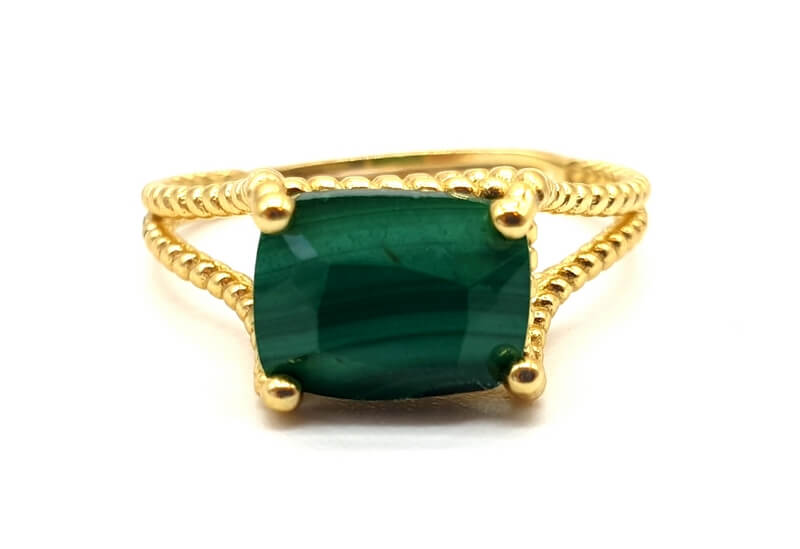 Anillo de plata 925 bañado en oro engastado con una malaquita de calidad extra.