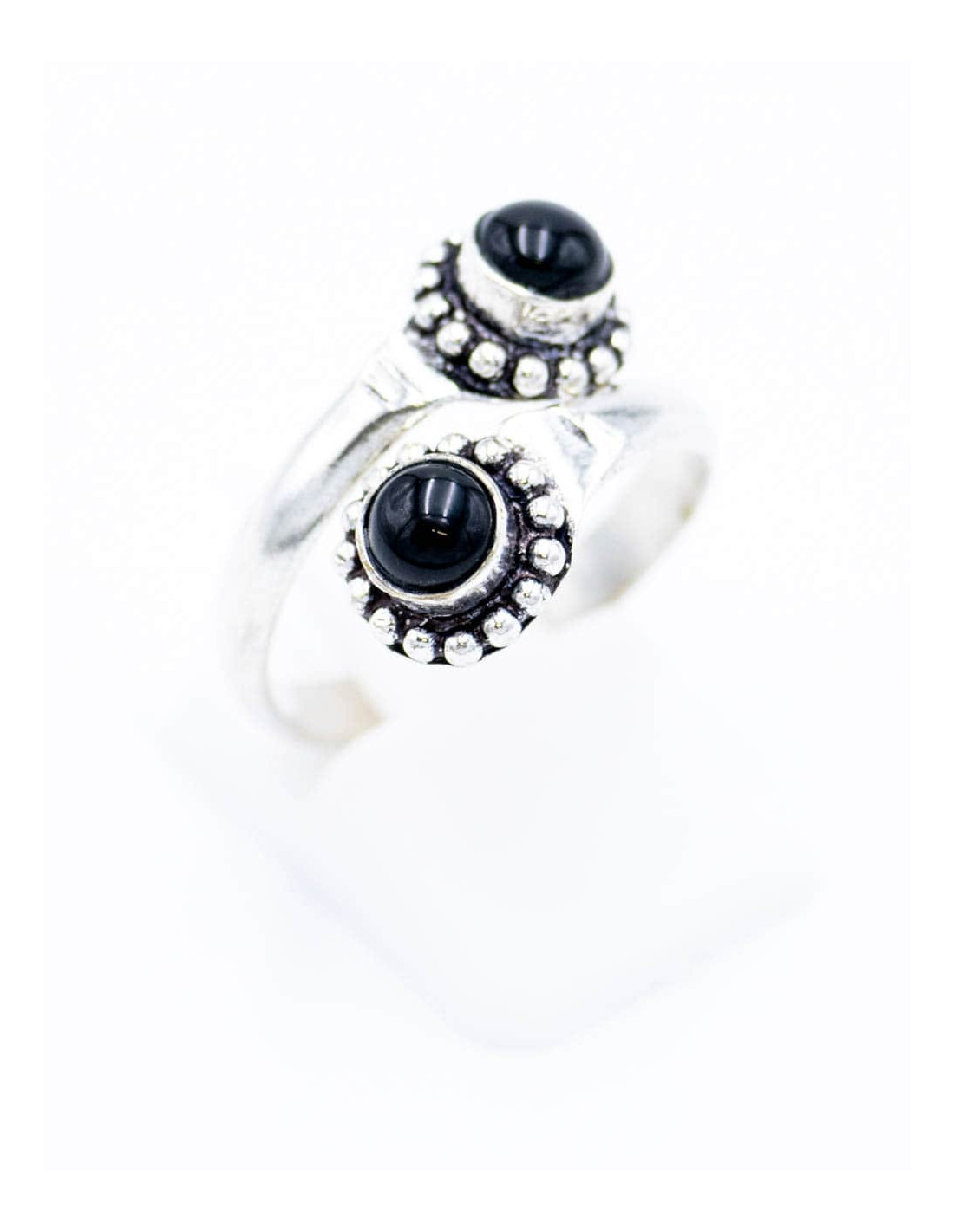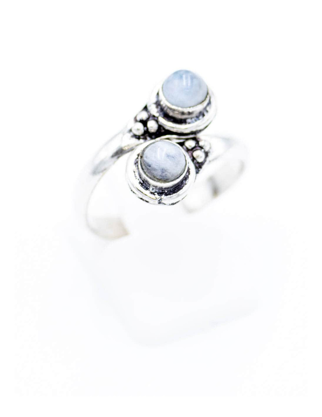 Anillo plateado con dos piedras minerales del mismo color