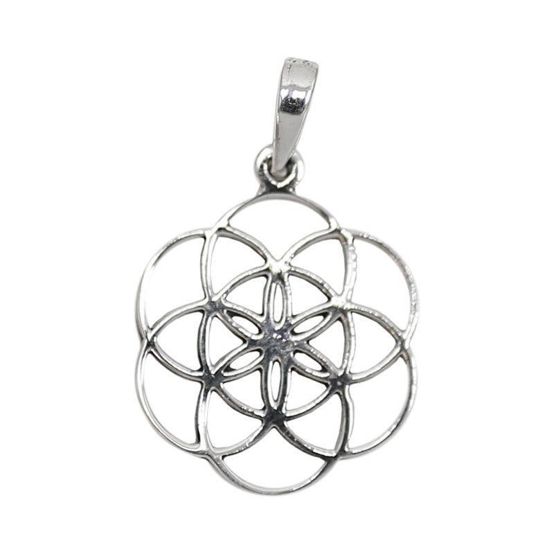 Colgante flor de la vida, hecho en plata certificada con el sello 925.