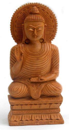 Estatua de madera de Buda Saludando en base 15cm