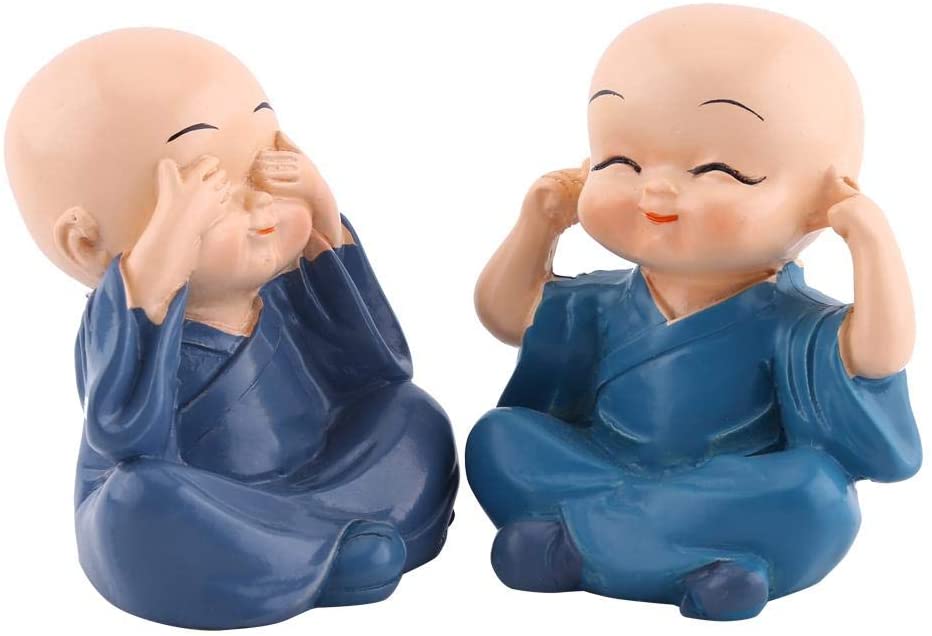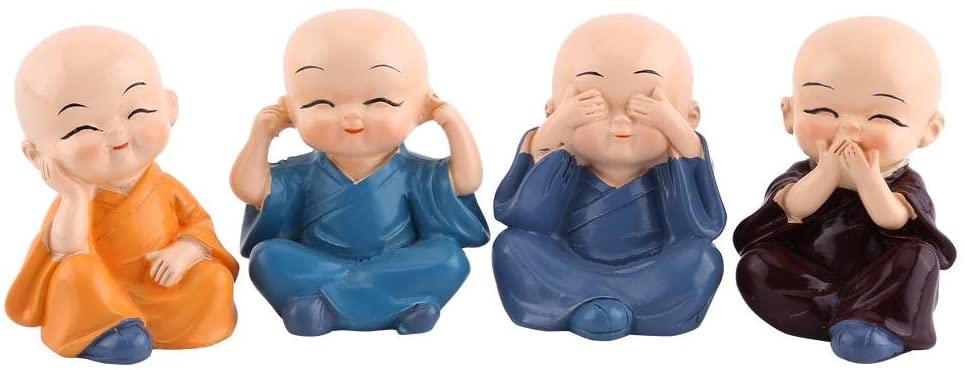 Cuatro figuras de monjes infantiles pequeñas de decoración en colores.