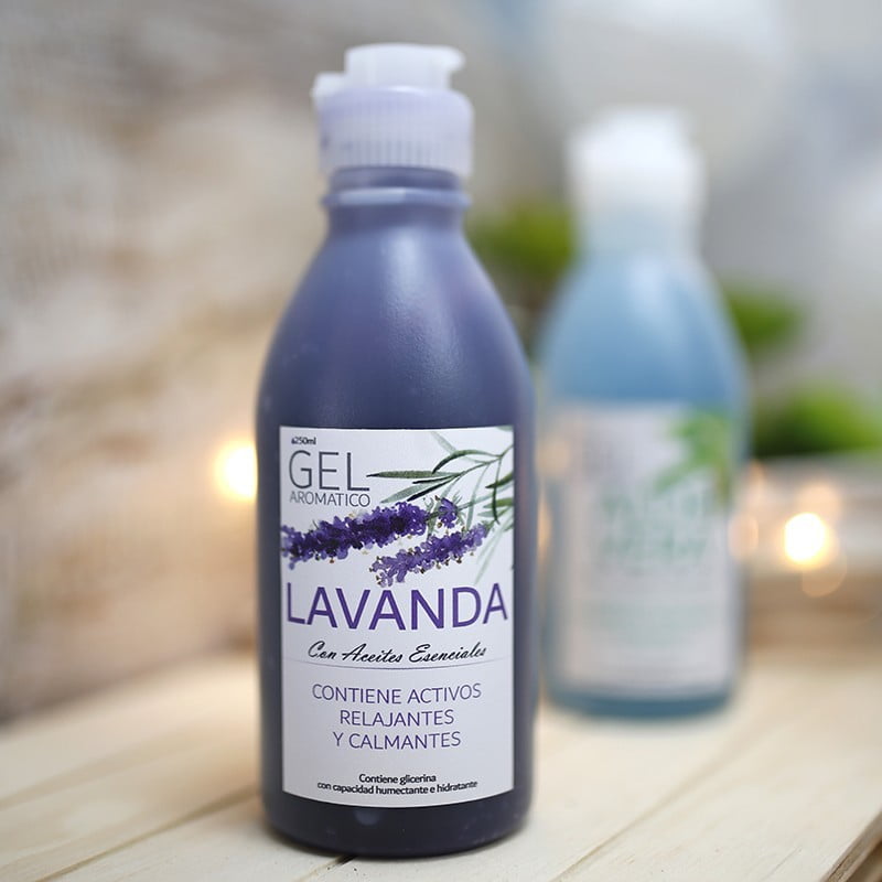 Gel aromático elaborados con aceite esencial de lavanda. Contiene activos relajantes y calmantes.