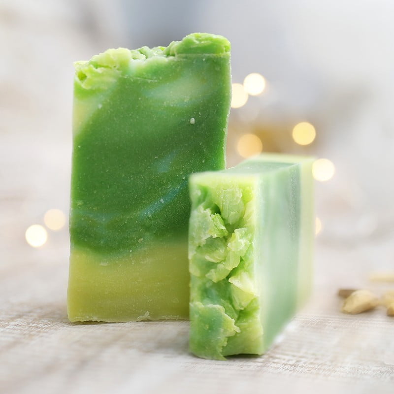 Jabón de aceites vegetales de oliva y coco con aloe vera. Totalmente libre de aceite de palma, sin SLS, sin parabenos y saponificados en frío.