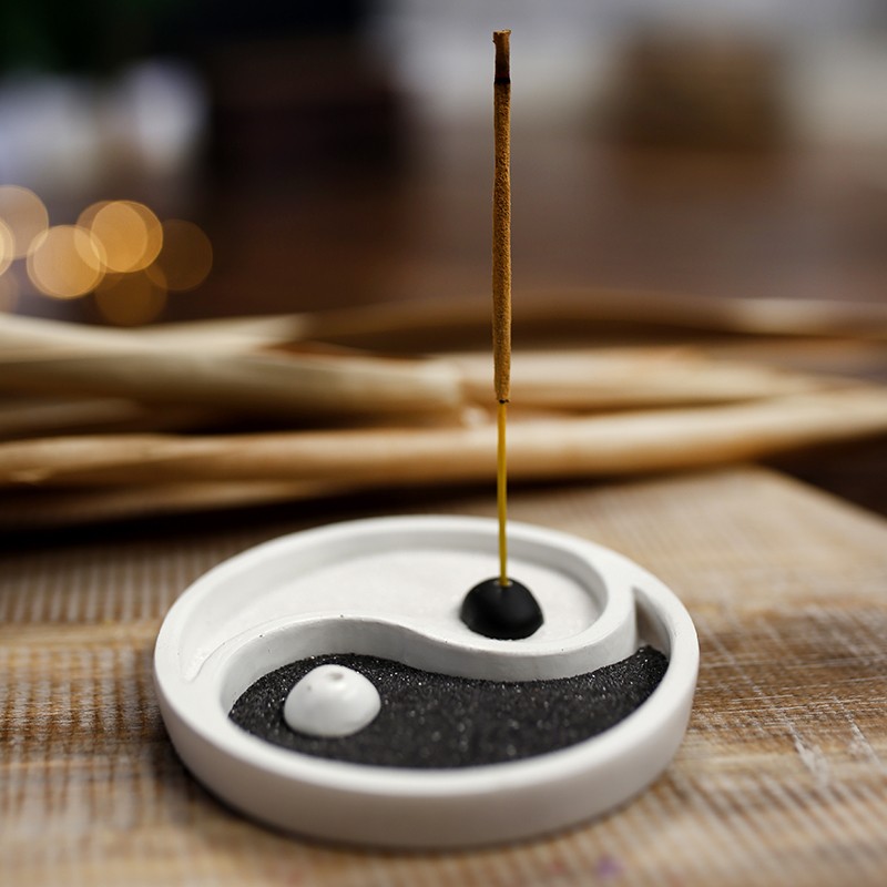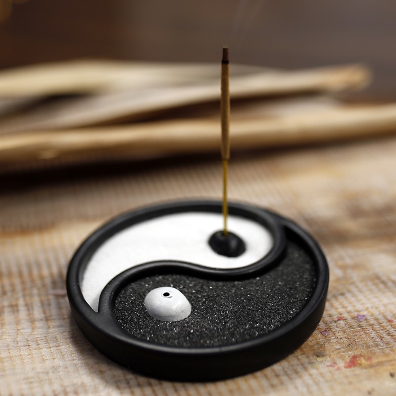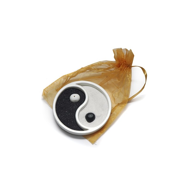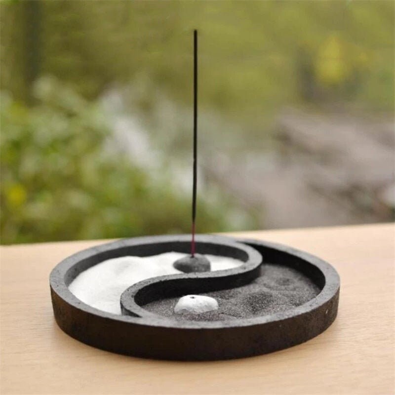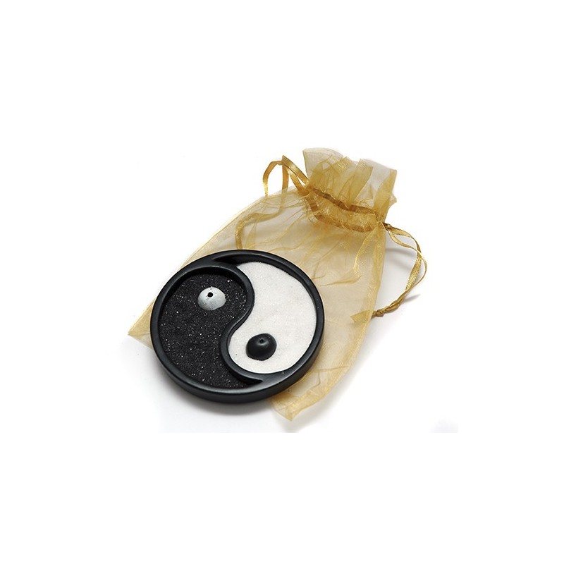 Relajante jardín Zen negro Ying yang para quemar inciensos, especialmente diseñado para meditación y relajación. Incluye todos los elementos para recrear el clásico jardín de rocas y arena que se encuentran en muchos templos zen.