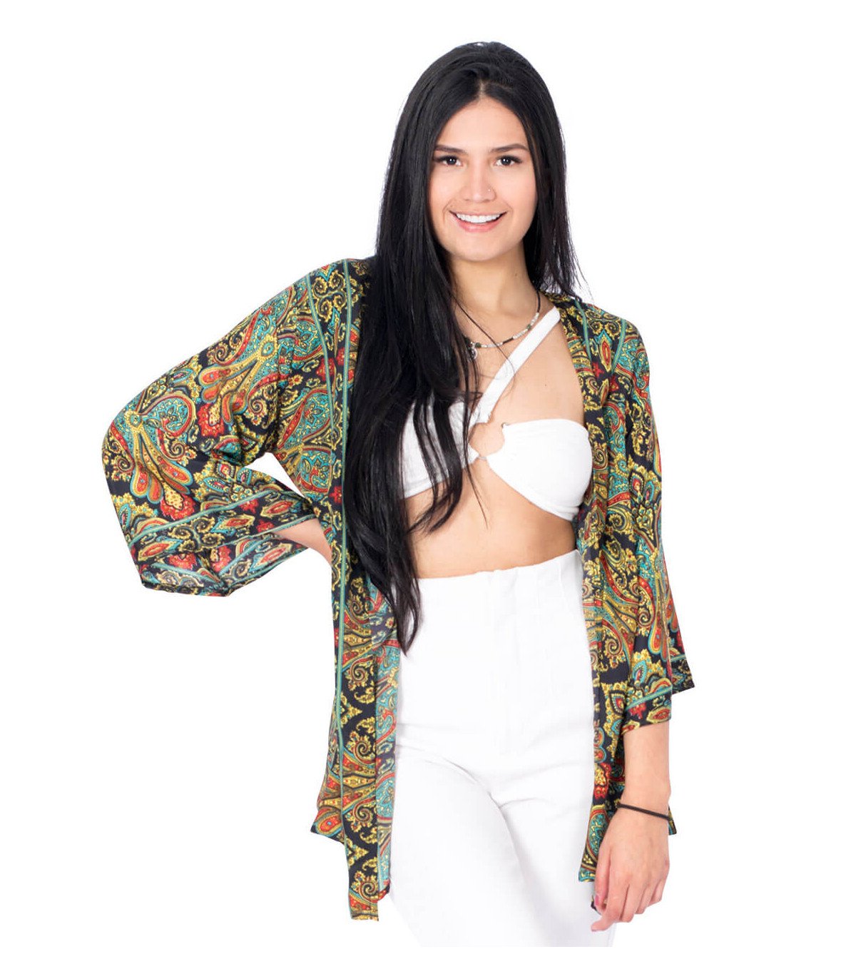 Kimono fabricado en seda y poliester con excelente caida y muy suave al tacto