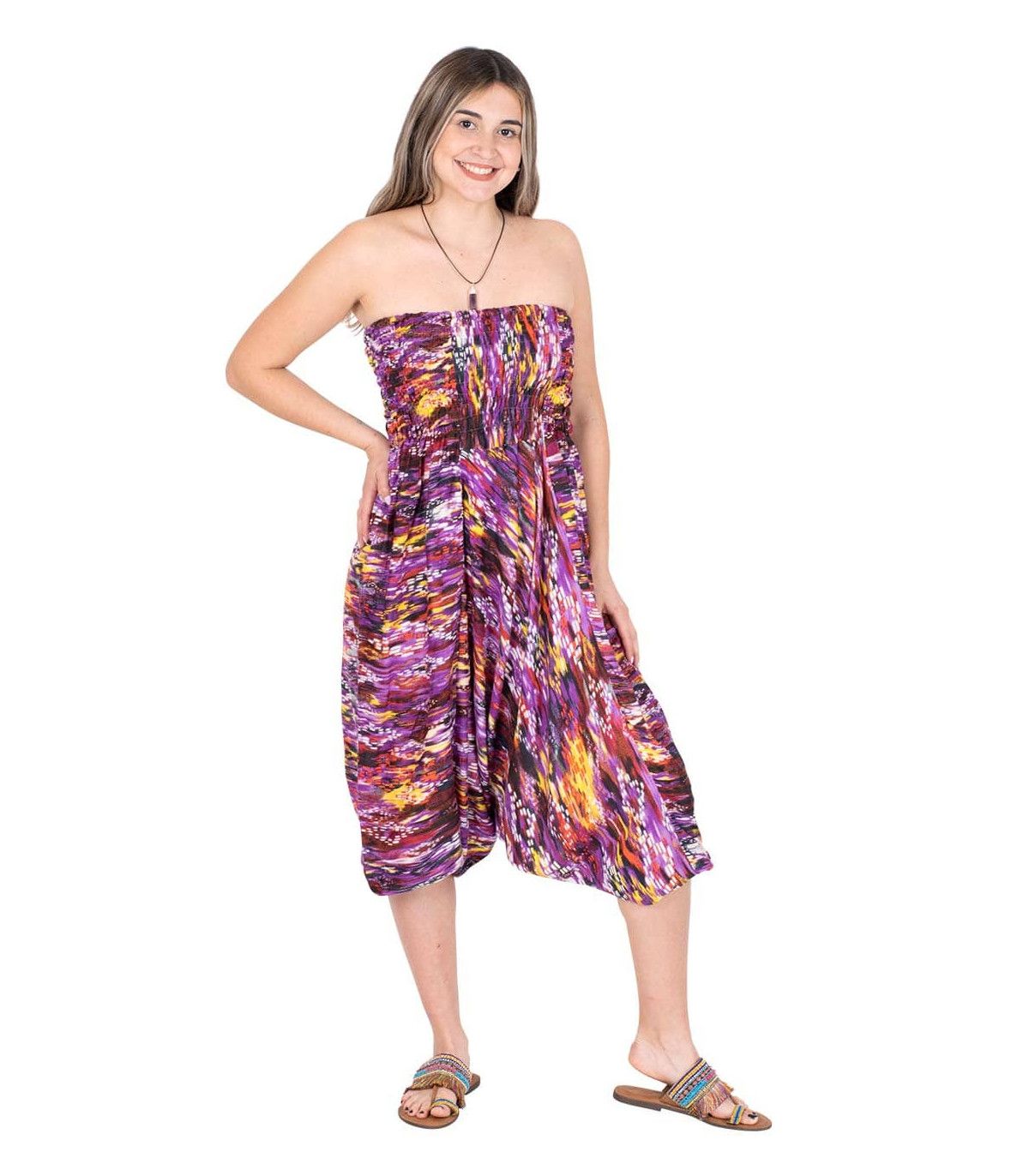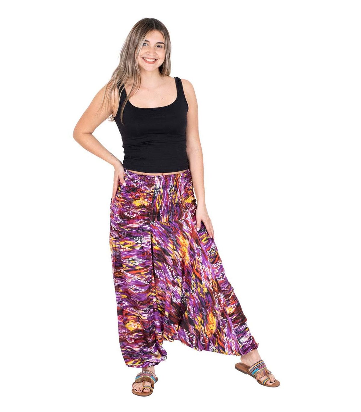 Pantalón afgano con posibilidades de hacerlo Mono ya que al colocar la goma de la cintura en el pecho puedes transformarlo