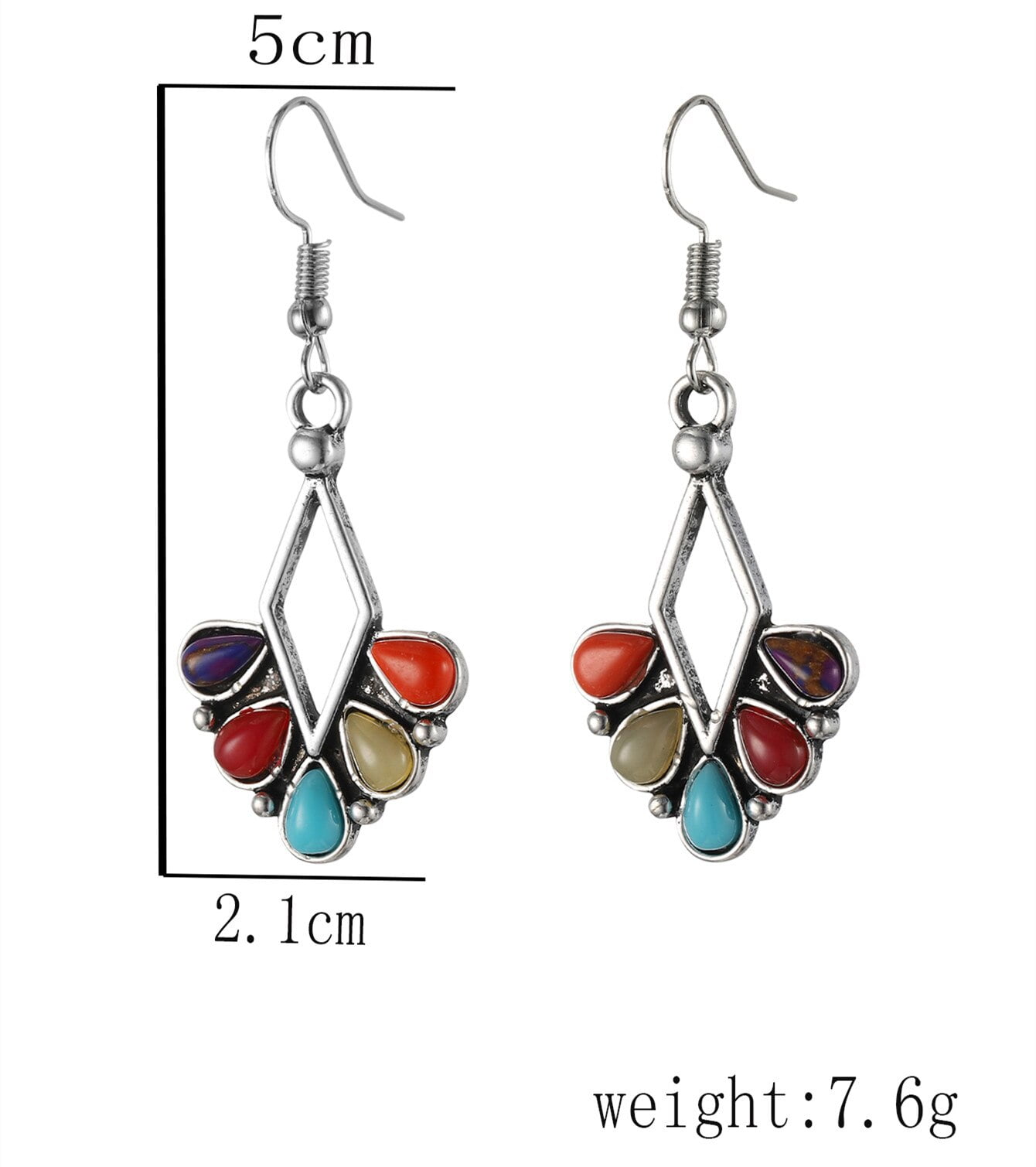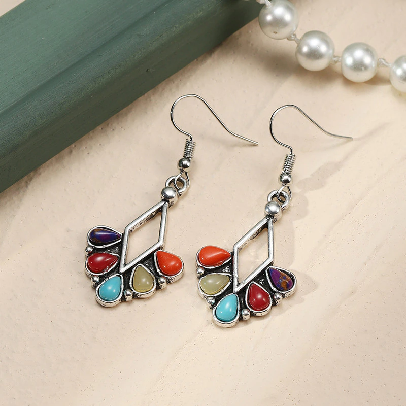 Preciosos pendientes largos vintage de turquesas multicolor en forma de gota de agua.