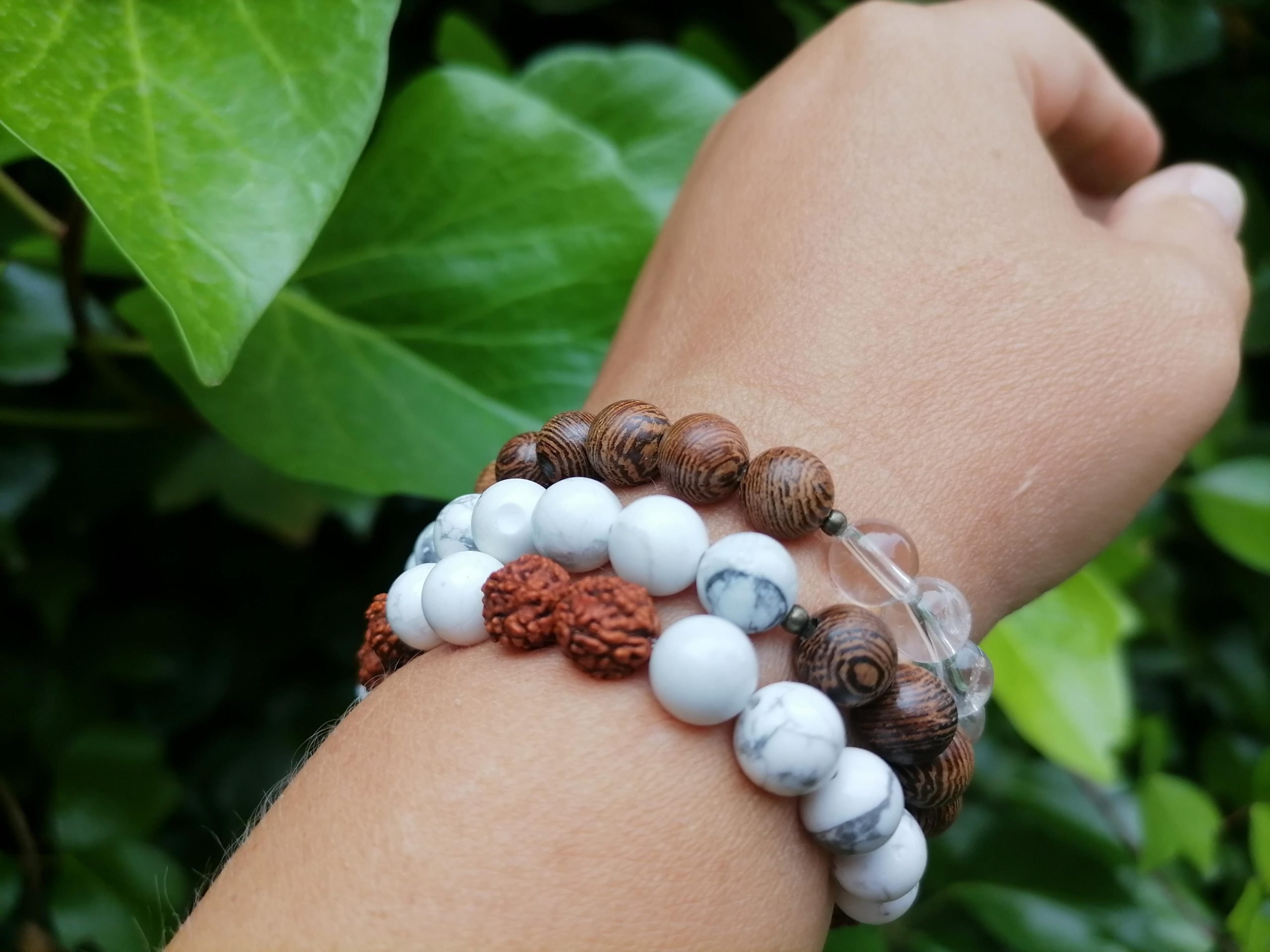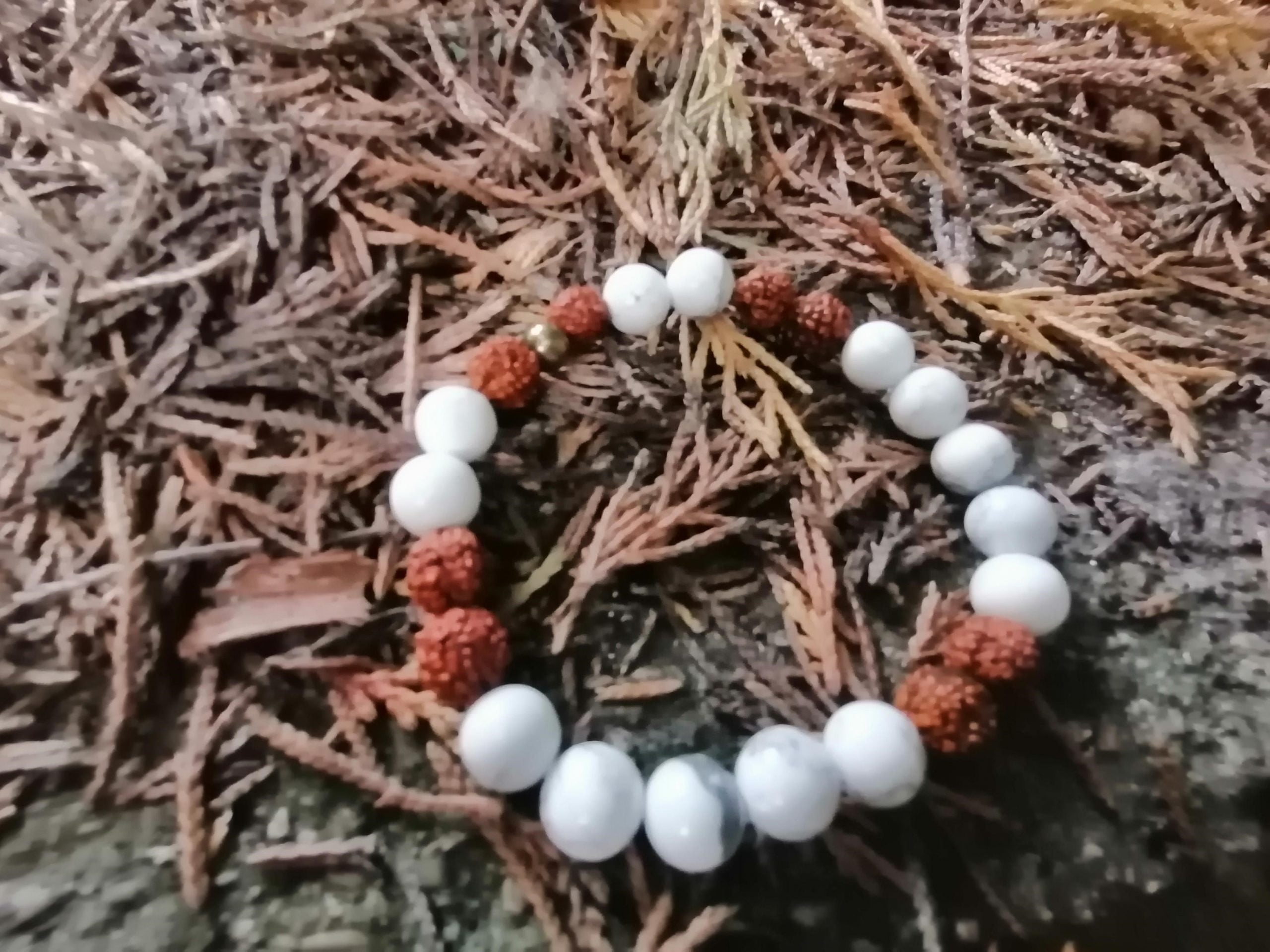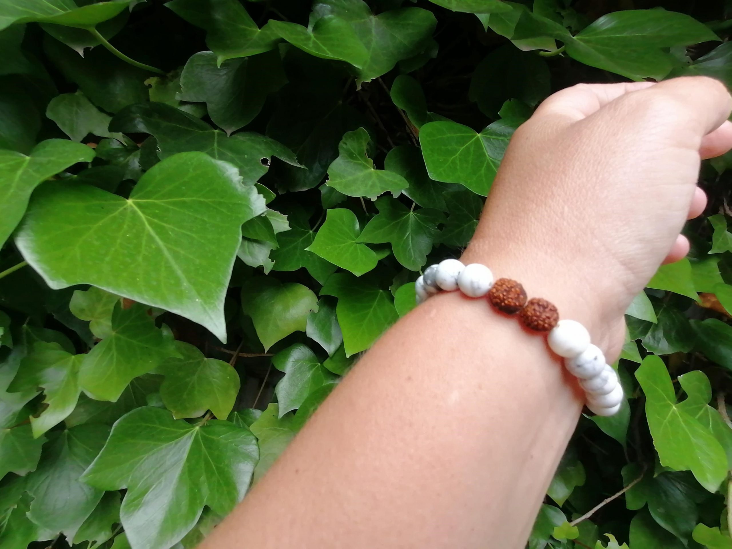 Pulsera Mixta Rudraksha y Howlita Blanca