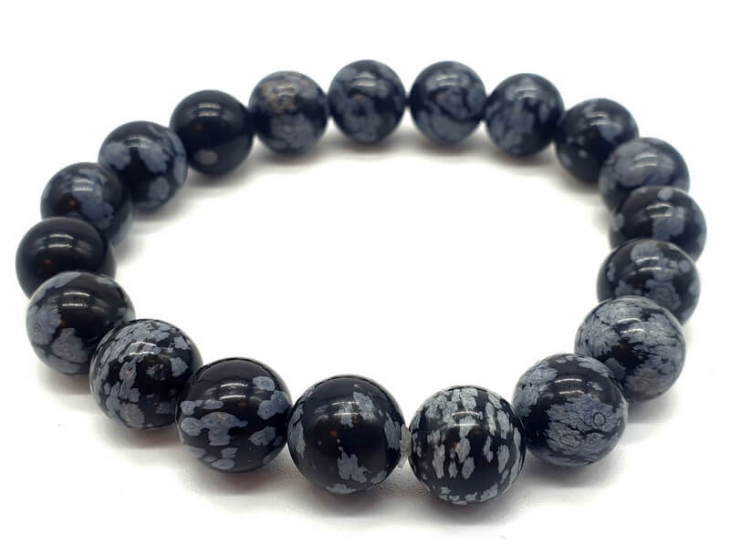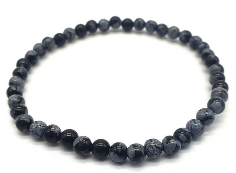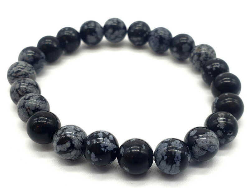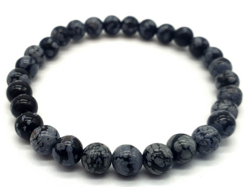 Pulsera elástica de cuentas naturales de obsidiana nieve de 4, 6, 8 Y 10 mm.