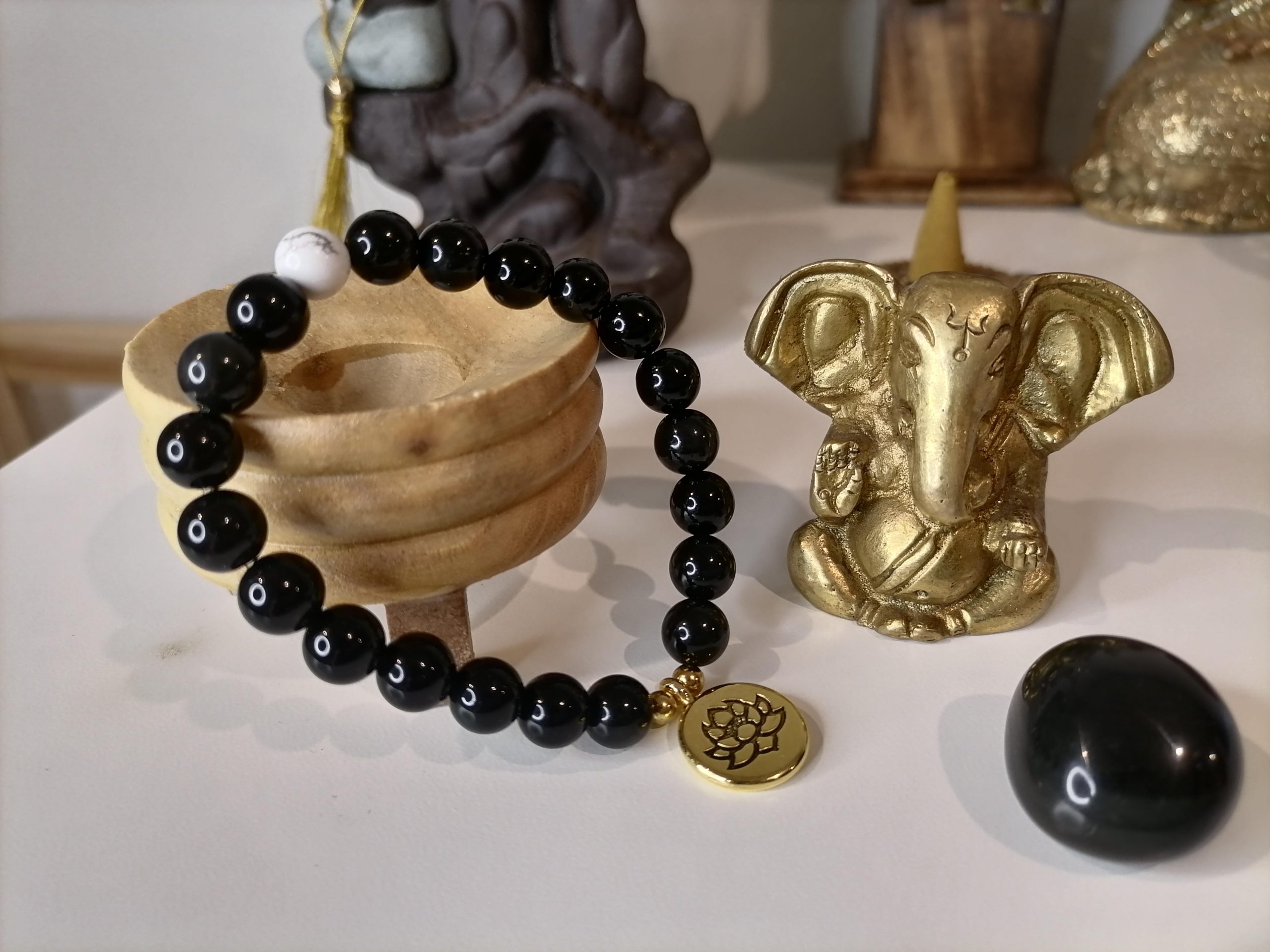 La Obsidiana se considera una potente piedra de crecimiento personal y transformación. Como piedra negra es usada para la protección, la limpieza y la purificación. Está relacionada con el 1º chakra, con la madre tierra, y representa la integración de la luz en el mundo terrenal, de manera consciente y dinámica.