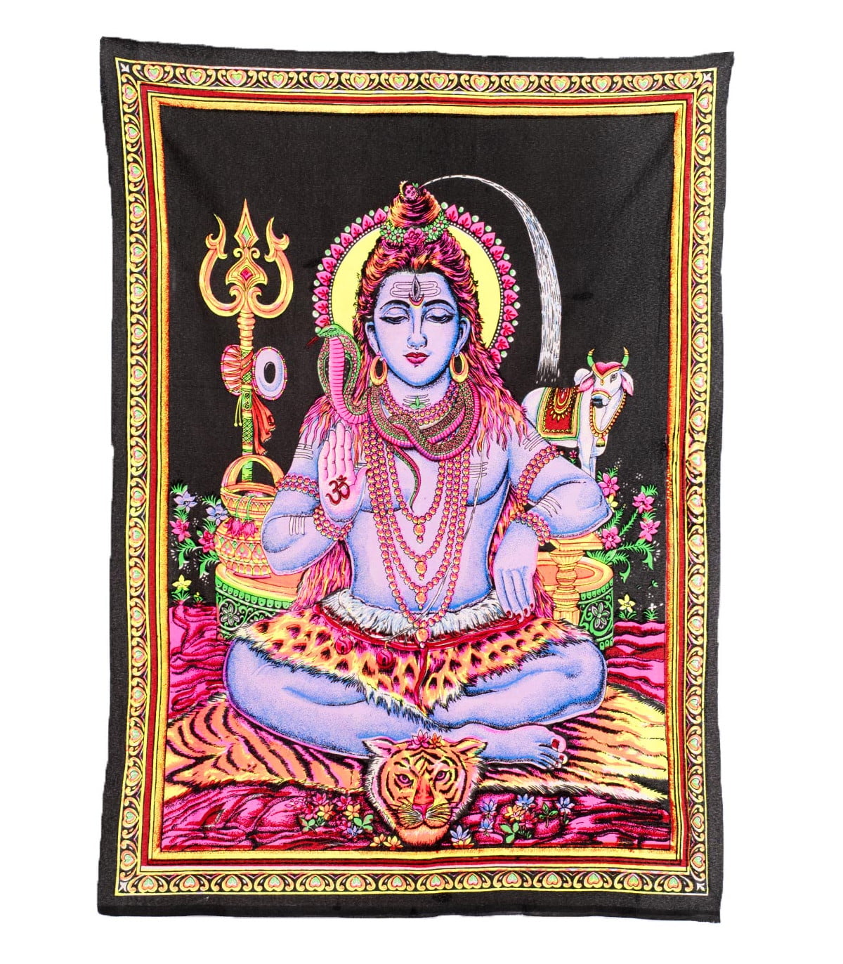 Tapiz sobre tela negro pintado a manoShiva es uno de los dioses más importantes del panteón hindú y se le considera miembro de la sagrada trinidad (trimurti) del Hinduismo, junto con Brahma y Vishnu. Es un personaje complejo, que puede representar la bondad y la benevolencia, y servir de protector.