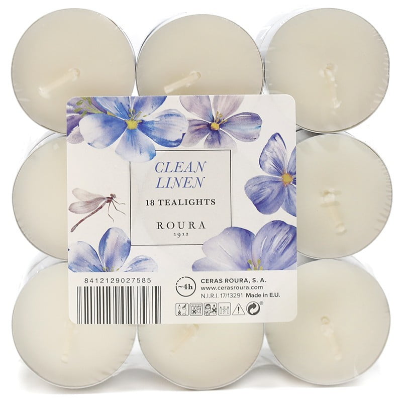 Velas nightlights con aroma a ropa limpia y una duración de 4H. Este pack incluye 18 unds.
